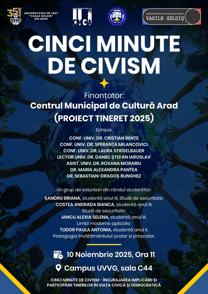 Cadre universitare, studenți şi intelectuali arădeni îşi vor aduce contribuția pentru a încuraja implicarea tinerei generații în viața civică.