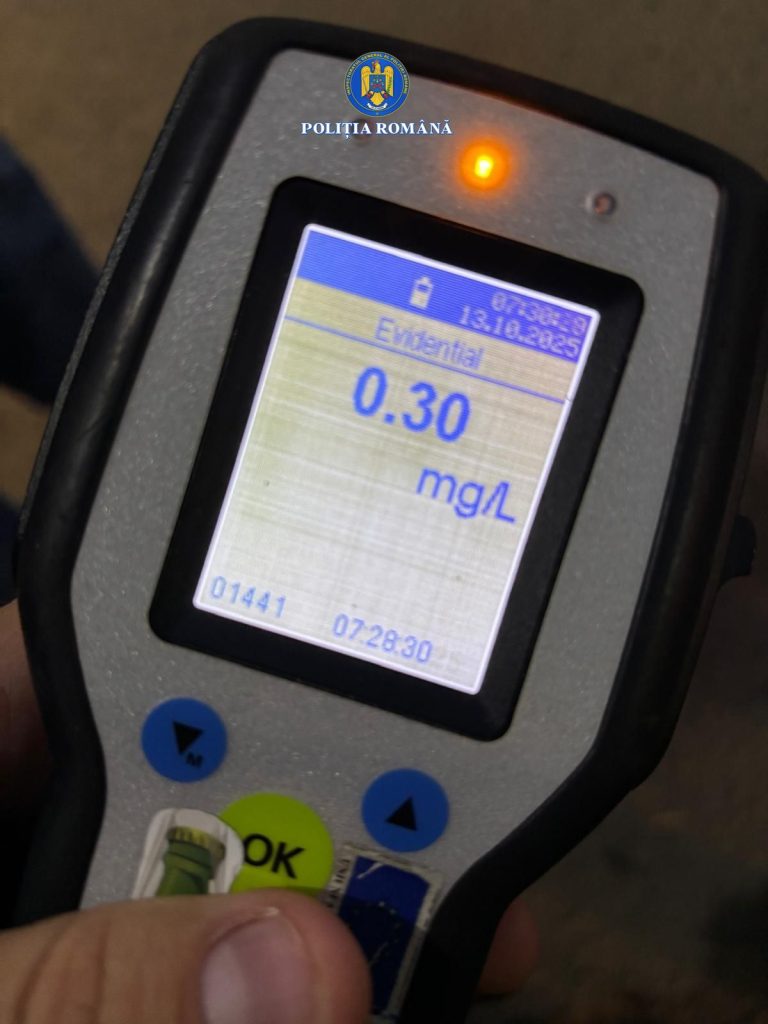 Testarea șoferului, un bărbat de 49 de ani, din Arad, a indicat o îmbibație alcoolică de 0,30 mg./l. alcool pur în aerul expirat.